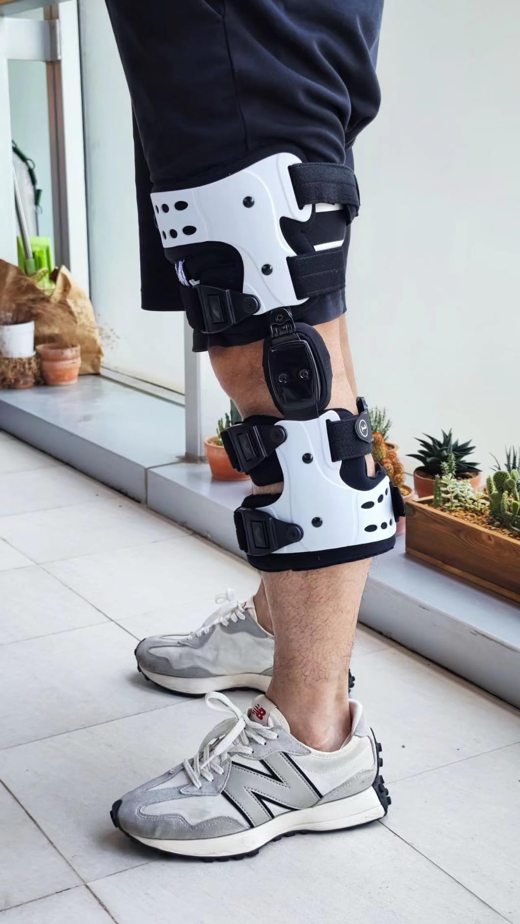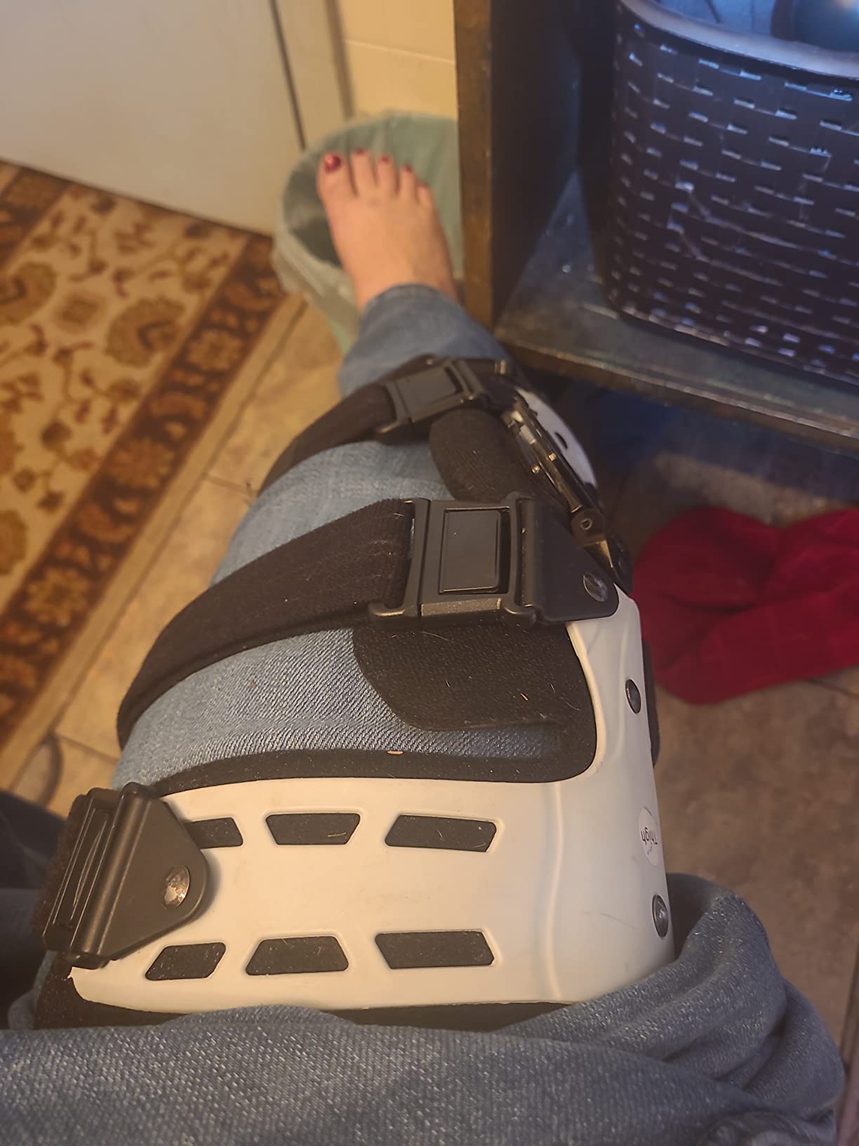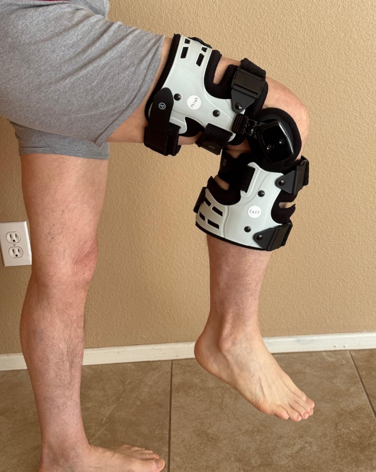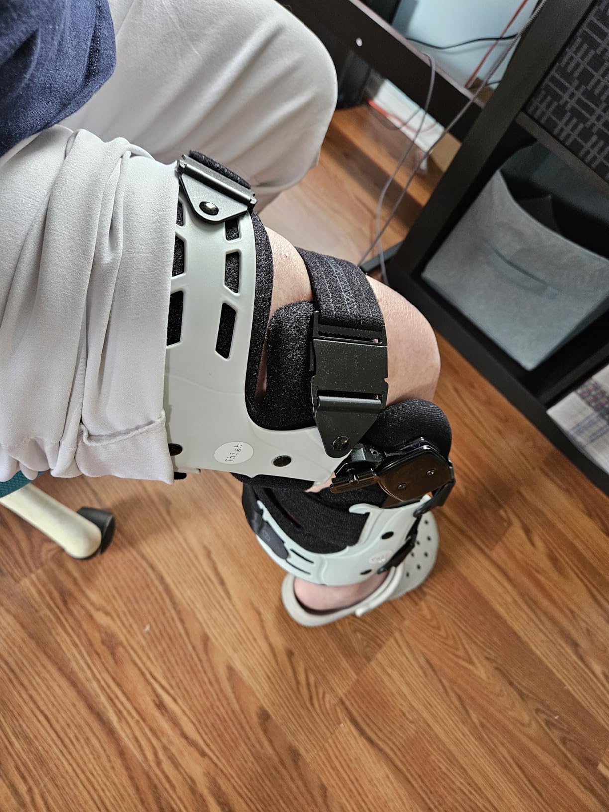 This knee brace is high quality. There is a tool that can be used to adjust the brace so you can put it in positions where you can limit the extension of your leg. There are quick release buckles to make this brace easy to take off and fast.